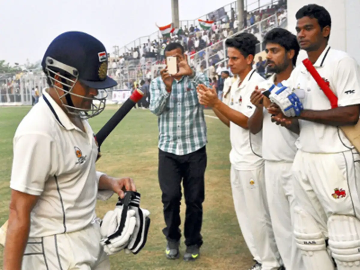 His Ranji career had begun in 1988 in equally poetic fashion—a century on debut at age 15, against Gujarat. Twenty-five years later, on this very day in 2013, the legend played his final Ranji match, again against Haryana. As he walked out to bat at age 40, a sea of fans roared, “Cricket ke Bhagwaan ki jai!” Zaheer Khan even missed his run-up amid the thunderous chants. Tendulkar simply smiled and told the crowd, “Zaheer thoda ghabra raha hai aapki awaaz se”—and the stadium burst into laughter.